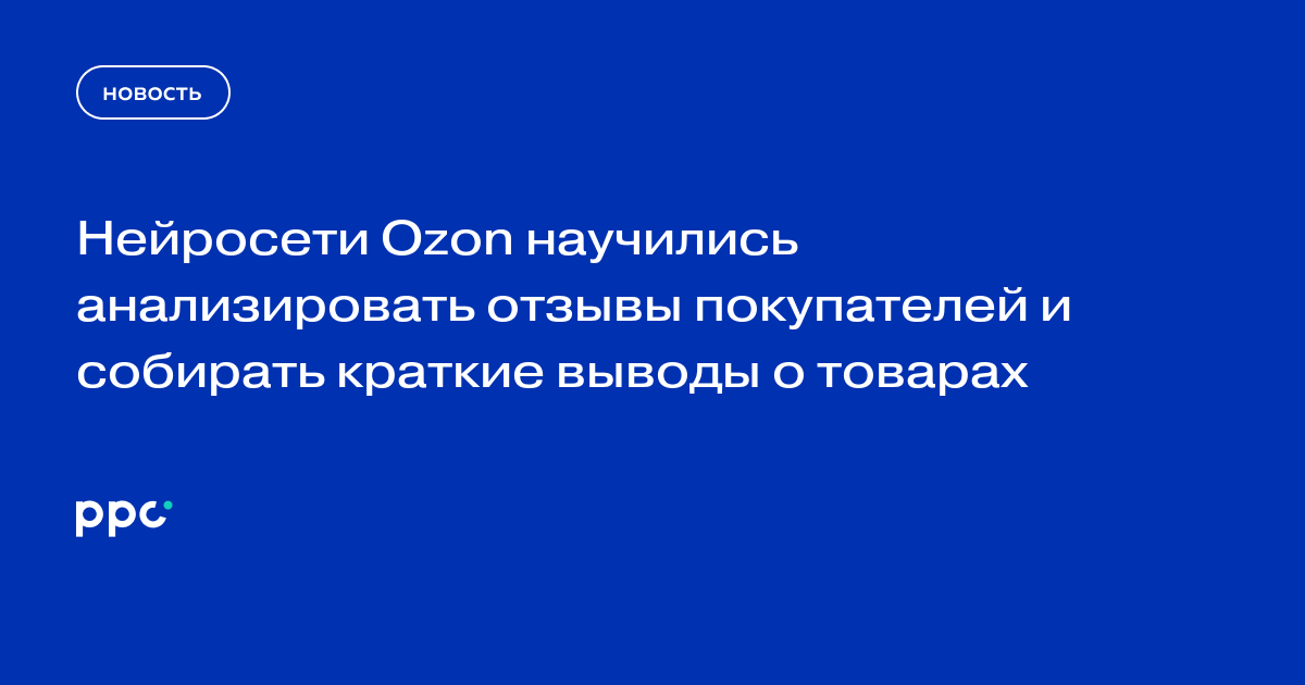 Ozon запустил AI-анализ отзывов для продавцов. Нейросеть автоматически обрабатывает все отзывы и выделяет топ-5 проблем: качество, доставка, несоответствие описанию, размер, упаковка.